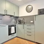 Een kitchenette met een koelkast, een broodrooster en een oven is inbegrepen in dit strand appartement in Kellenhusen.